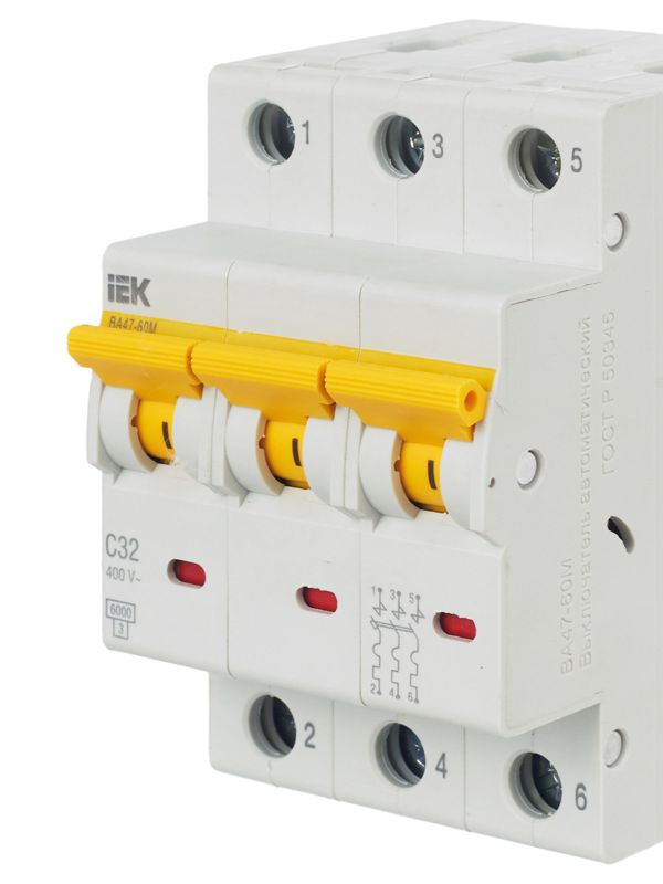 Выключатель автоматический модульный 3п C 32А 6кА ВА47-60M IEK MVA31-3-032-C