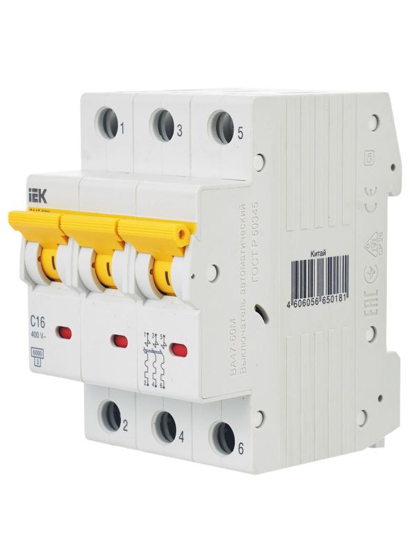 Выключатель автоматический модульный 3п C 16А 6кА ВА47-60M IEK MVA31-3-016-C