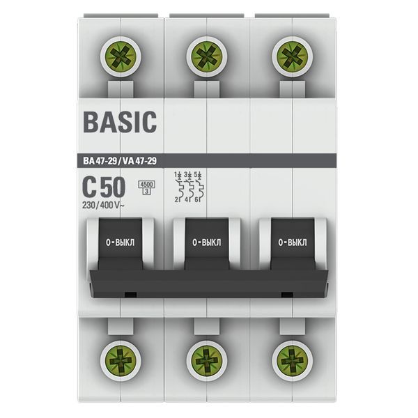 Выключатель автоматический модульный 3п C 50А 4.5кА ВА 47-29 Basic EKF mcb4729-3-50C