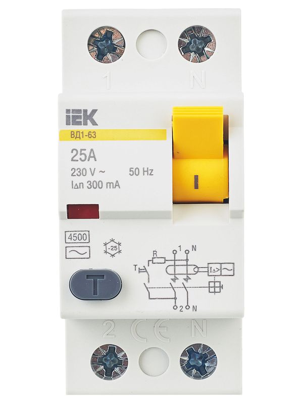 Выключатель дифф. тока (УЗО) 2п 25А 300мА тип AC ВД1-63 IEK MDV10-2-025-300