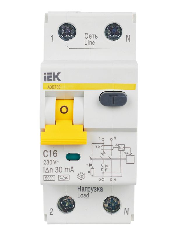 Выключатель авт. дифф. тока 2п (1P+N) C 16А 30мА тип A 6кА АВДТ-32 2мод. IEK MAD22-5-016-C-30