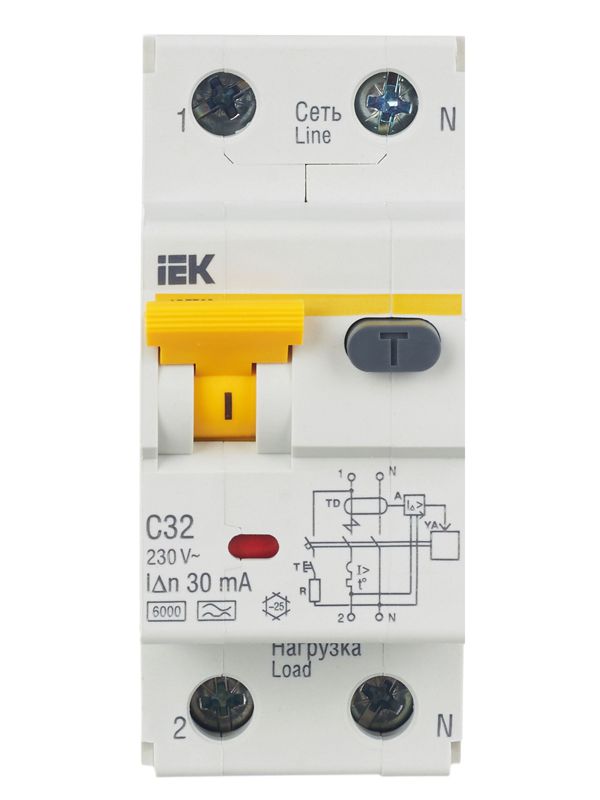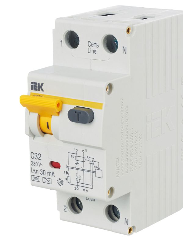Выключатель авт. дифф. тока 2п (1P+N) C 32А 30мА тип A 6кА АВДТ-32 2мод. IEK MAD22-5-032-C-30