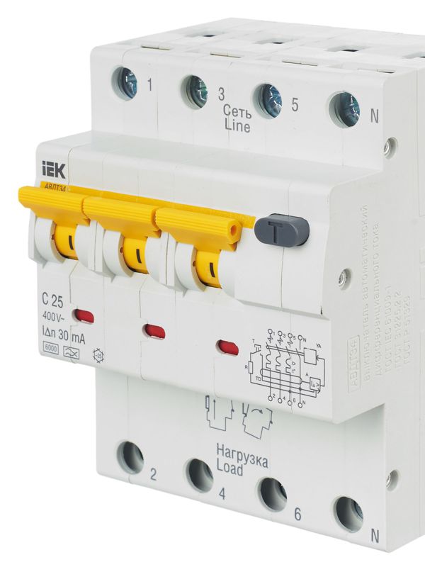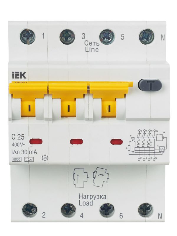 Выключатель авт. дифф. тока 4п (3P+N) C 25А 30мА тип A 6кА АВДТ-34 4мод. IEK MAD22-6-025-C-30