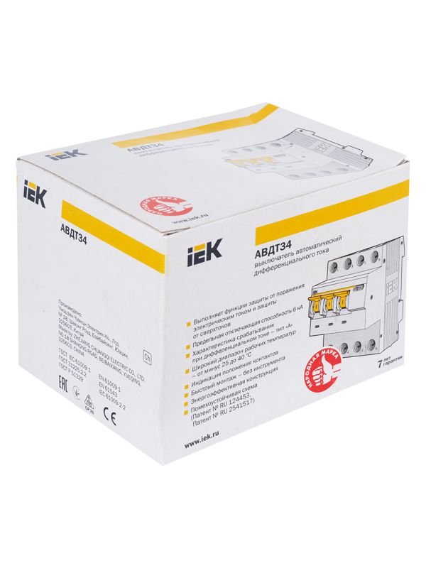 Автоматические выключатели дифференциального тока АВДТ34 предназначены для защиты человека от поражения электрическим током при повреждении изоляции электроустановок, для предотвращения пожаров вследствие протекания токов утечки на землю и для защиты от перегрузки и короткого замыкания в сетях переменного тока напряжением 400 В и частотой 50 Гц.