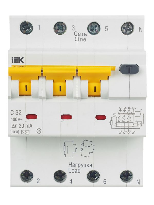 Выключатель авт. дифф. тока 4п (3P+N) C 32А 30мА тип A 6кА АВДТ-34 4мод. IEK MAD22-6-032-C-30