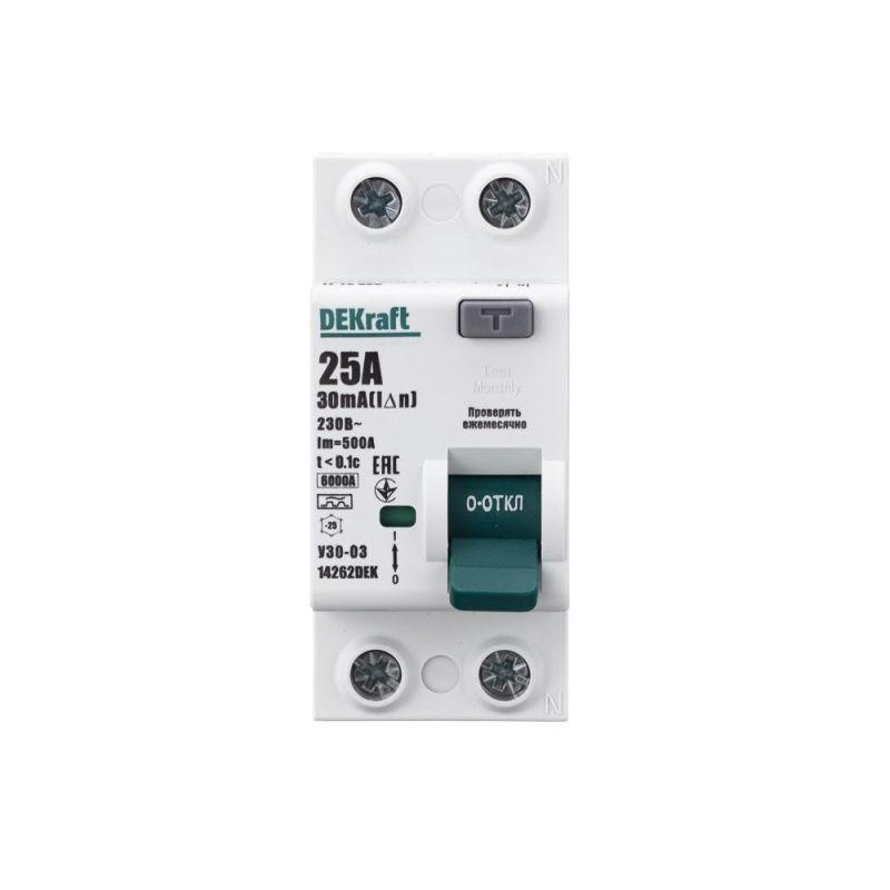 Выключатель дифференциального тока (УЗО) 2п 25А 30мА тип A 6кА УЗО-03 DEKraft 14262DEK -