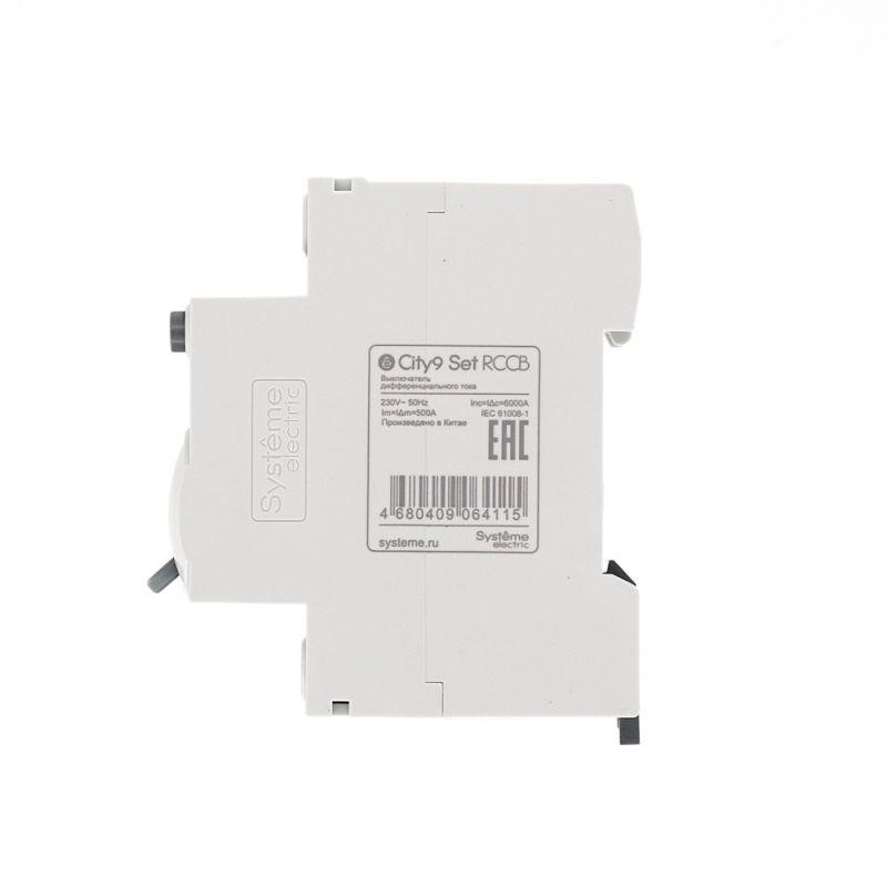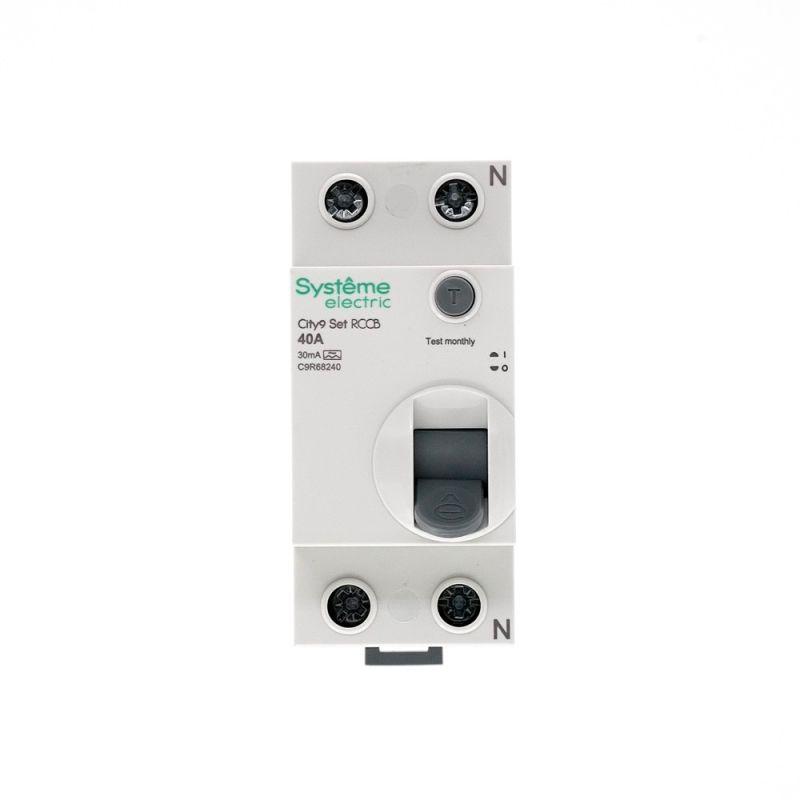 Выключатель дифференциального тока (ВДТ) или устройство защитного отключения (УЗО) серии City9 Set Systeme Electric, 2-полюсный, номинальный ток 40А, ток утечки 30 мА, тип А, электромеханический. Применяется в электрических сетях напряжением 230В. Уставка по току утечки 30 мА обеспечивает гарантированную защиту людей при прямом и косвенном прикосновении. Кнопка тест обеспечивает проверку работоспособности аппарата. Крепление на DIN-рейку шириной 35 мм. Подключение сверху и снизу. Безопасные клеммы.
