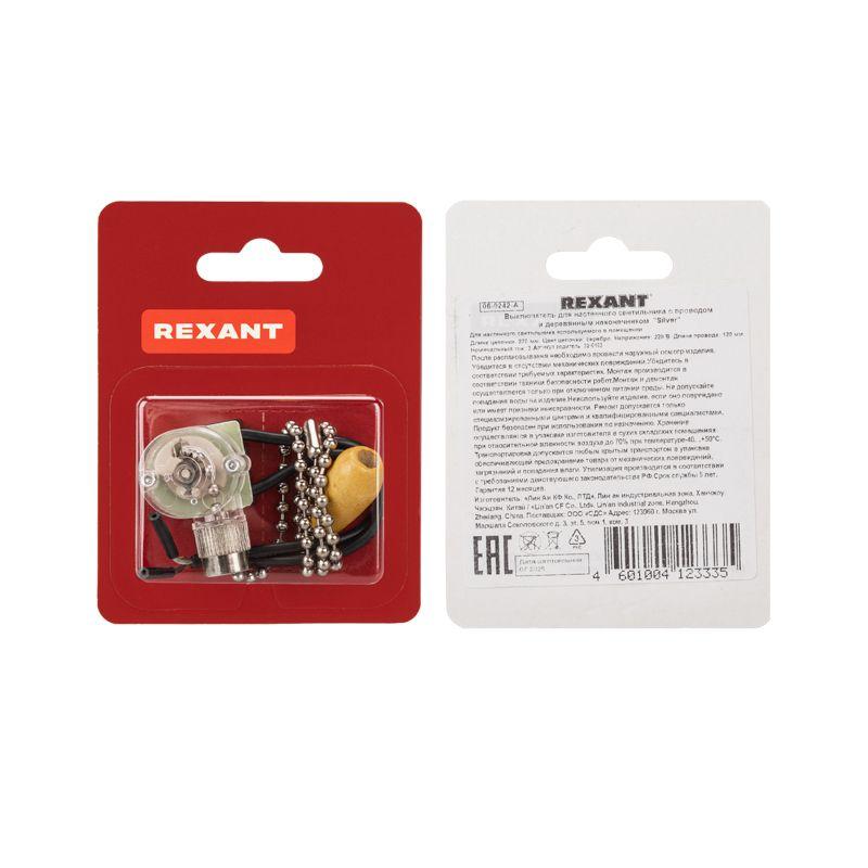 Выключатель для настенного светильника с проводом и деревянным наконечником Silver блист. Rexant 06-0242-A -