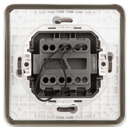 Выключатель влагозащищённый 1-клавишный с подсветкой серии Эра Эксперт накладн IP55 цвет белый 11-1522-01 скрытой установки. Номинальные характеристики 10А 250В . Выполнен из качественного поликарбоната, оснащён уникальными винтовыми клеммами ЭКСПЕРТ для максимально качественного зажима кабеля в механизме.