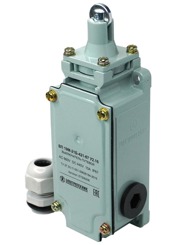 Выключатели путевые серии ВП 19 предназначены для применения в электрических цепях управления, сигнализации и контроля относительного положения подвижных частей механизма в пространстве.