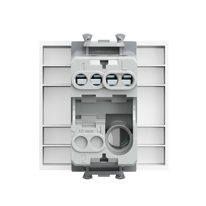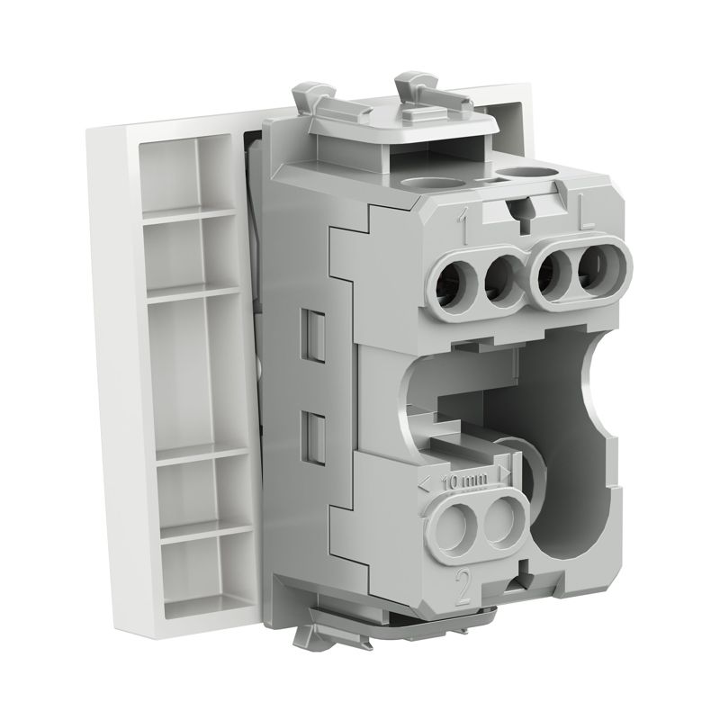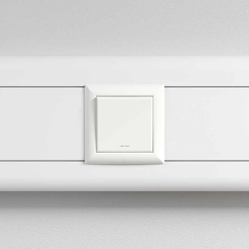 Выключатель одноклавишный однополюсный, модульный. Предназначен для монтажа в систему пластиковых коробов "In-liner Front" и систему организации рабочих мест "Sotto" при помощи рамок-суппортов и каркасов "Avanti" (код 4400912 и т.д.); используется для включения/выключения освещения. Характеристики: диаметр отверстий для ввода кабелей – 3 мм (по 2 отверстия на одну клемму); винтовые зажимы; шаблон для зачистки кабеля – 11 мм; номинальный ток – 16 A; номинальное напряжение – 230 В; возможна фиксация в подрозеточные коробки при помощи каркаса с лапками (код 4400802) и саморезов. 2 модуля. Цвет: "Белое облако". Производитель оставляет за собой право вносить во внешний вид изделия изменения, которые не влияют на его функционал, безопасность и надежность.