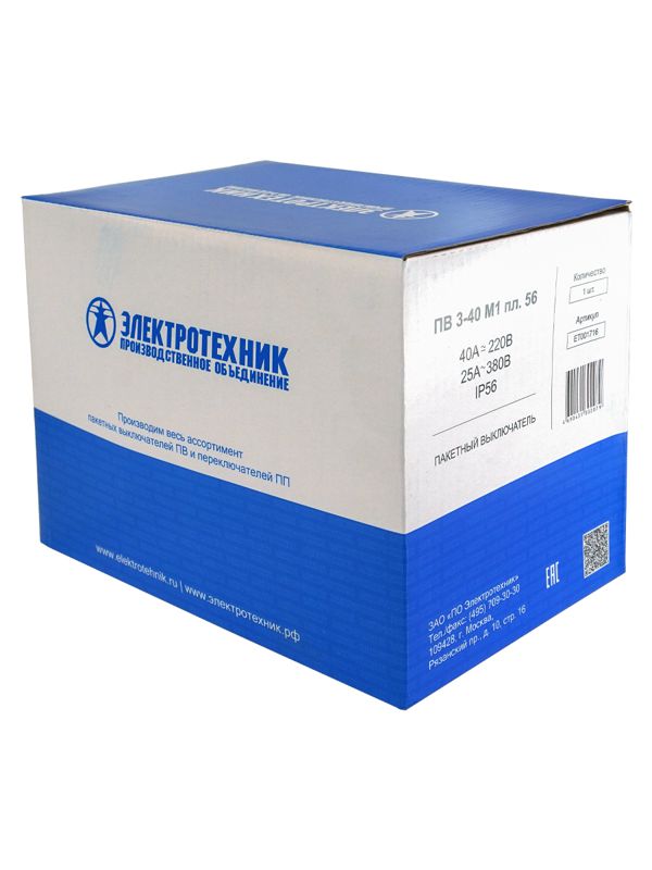 Выключатель пакетный ПВ3-40А в пл. корп. IP56 Электротехник ET001716