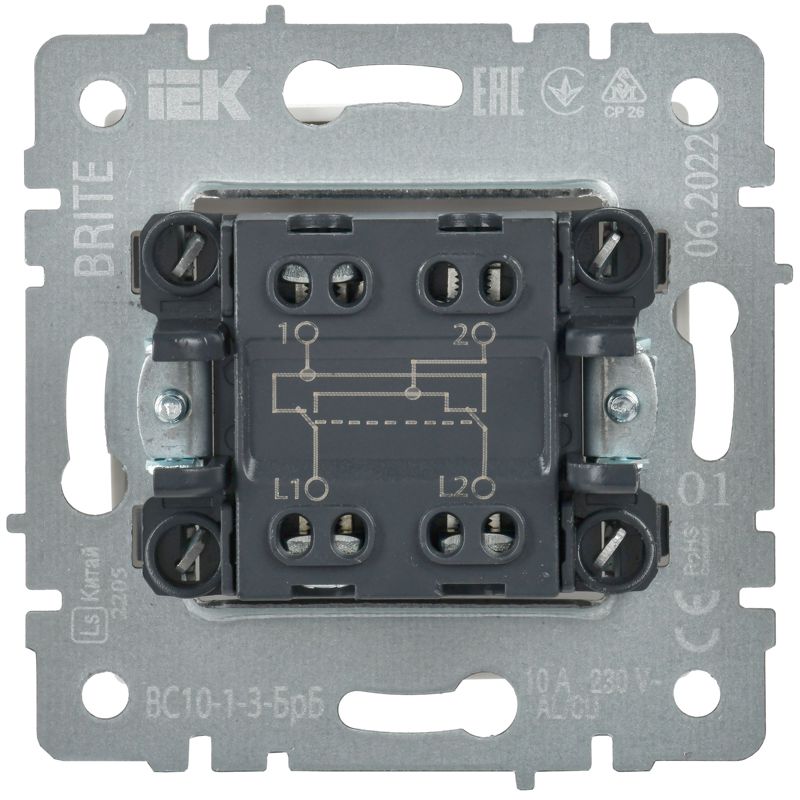 Выключатель перекрестный 1-кл. СП BRITE 10А ВС10-1-3-БрБ бел. IEK BR-V13-0-10-K01 -