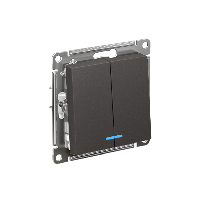 Механизм Systeme Electric (ранее Schneider Electric) серии AtlasDesign в цвете базальт выключателя 2-клавишного c подсветкой подходит для сетей 250 В, на ток 10 А. Благодаря светодиодной подсветке синего цвета изделие легко найти в темноте. Двухклавишный выключатель позволяет управлять двумя источниками света с одной точки. Лицевые детали из качественного ABS-пластика, устойчивого к царапинам и УФ-излучению. Усиленные прямые монтажные лапки для лучшей фиксации механизма в монтажной коробке.