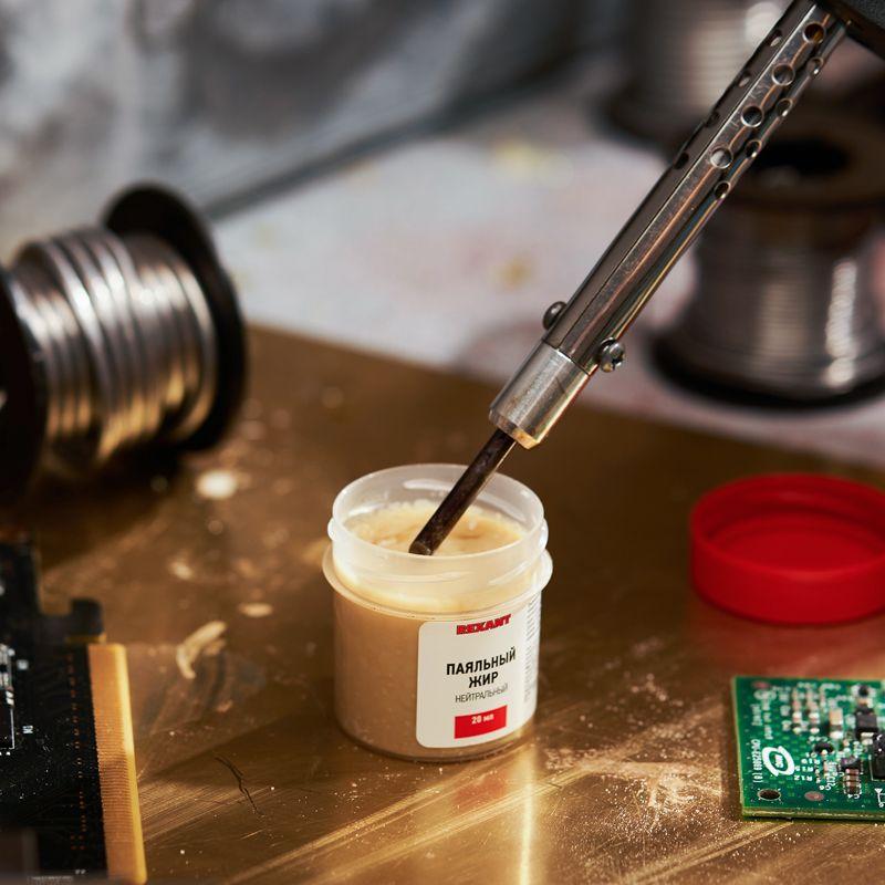 Нейтральный паяльный жир предназначен для удаления оксидов с поверхности под пайку, улучшения растекания жидкого припоя при пайке радио- и электротехнических устройств. Преимущественно используется для пайки токопроводящих деталей телефонной, радио- и электронной аппаратуры. Не применяется для пайки алюминия и его сплавов. Изготовлен в соответствии с ГОСТ 19250-73.