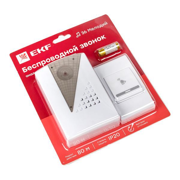 Звонок беспроводной 36 мелод. 80м с индик. на батарейках 004 2х1.5В АA бел.-сер. Basic EKF DBB-A-004 -