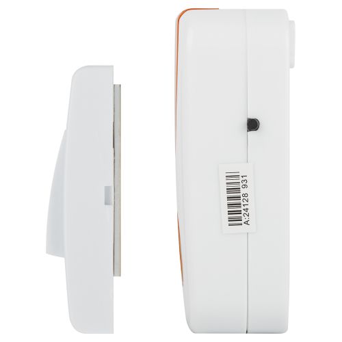 Беспроводной аналоговый дверной звонок с 32 полифоническими мелодиями. Ловит сигнал в радиусе до 100 метров. Работает от батареек: 1 шт А23 для кнопки (входит в комплект), 2 шт ААА мизинчиковые для динамика (в комплект не входят). Кнопка и динамик имеют степень защиты IP20 (не подходит для использования на улице). Бело-оранжевый дизайн, аккуратная форма динамика. Над кнопкой предусмотрено пространство для указания номера квартиры. Звук звонка не надоест со временем, так как мелодии легко менять по настроению.